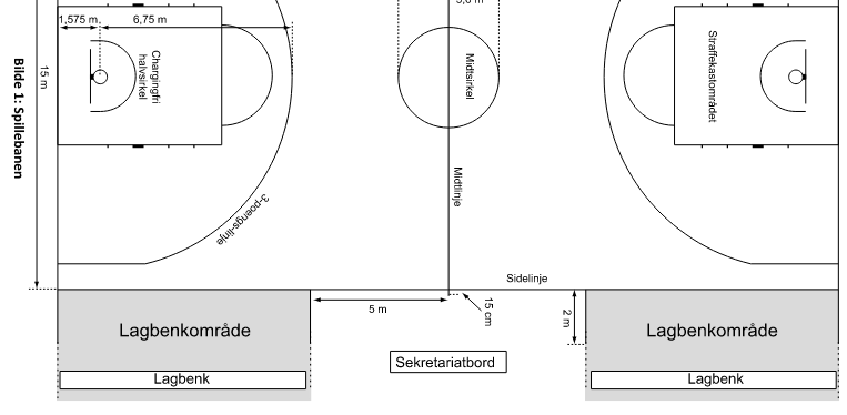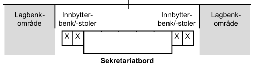 Man trenger plass til minimum 12 spillere på lagbenk, gjerne en ekstra eller 2 til trenere. Videre skal det være et bord eller 2, og minimum 3 stoler til sekretariat. Dessuten skal det også være 2 stoler på hver side av sekretariatsbord for lagenes innbyttere.
